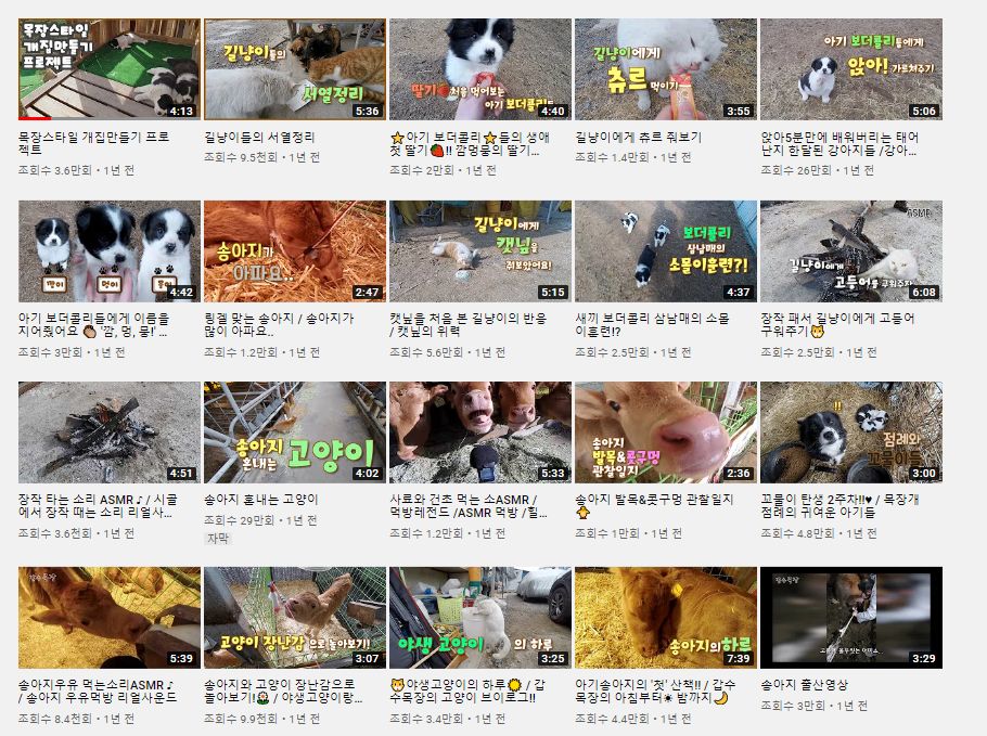 처음 콘셉트는 동물농장, 수의사의 하루 같은 일상과 관련된 영상을 계시하였습니다.