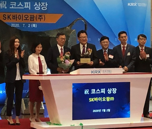 지난 2일 오전 8시 50분 SK바이오팜 상장기념식이 열렸습니다.