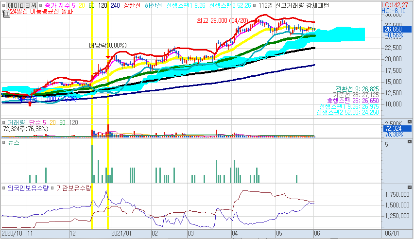 매출이 깡패라는 말과 일맥상통한 에이피티씨는 우선 10,000원대에서 최고 29,000원까지 상승한 기록이 남아 있습니다.