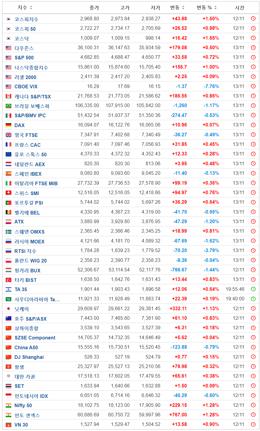우선 전 세계 증시를 한번 보자면, 선물 마감일 이후 금요일장 답지 않게 일제히 상승을 견인하였습니다.