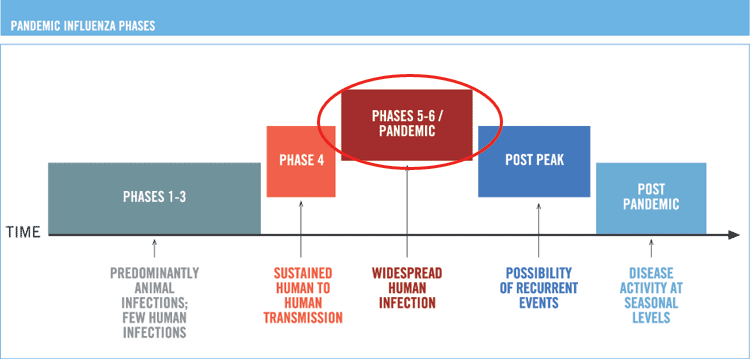 이 단계의 발령은 세계적으로 대유행이 진행중임을 의미한다.