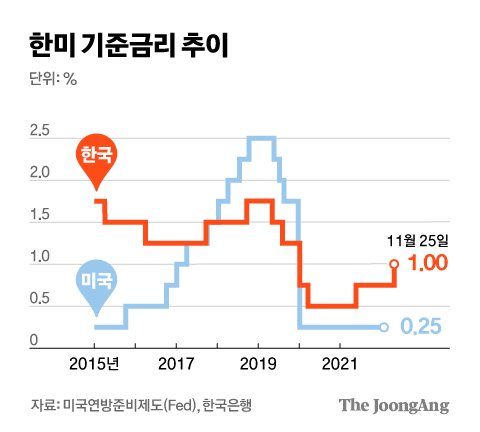 지난 8월 기준금리 인상 (0.5%->0.75%)에 이어 3개월 만에 추가 기준금리는 인상을 단행한 것인데,